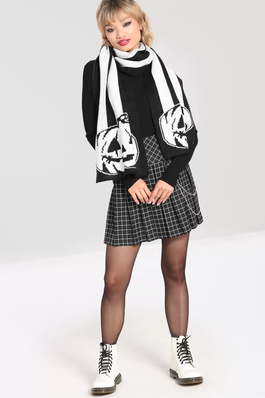 Chunky knit graphic scarf Black & white stripes with jack o lantern faces at each endOversized & thick knitLength is 201…