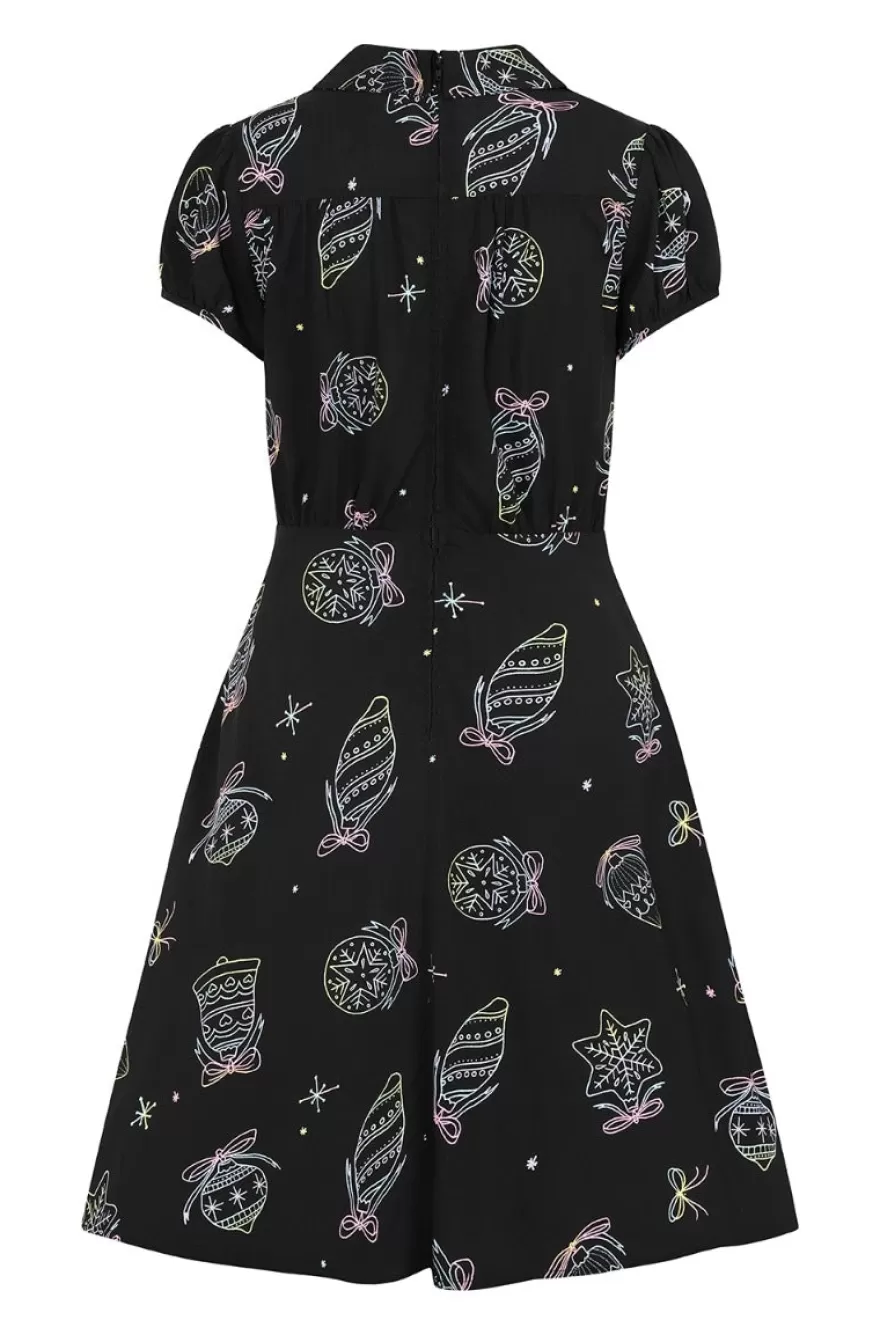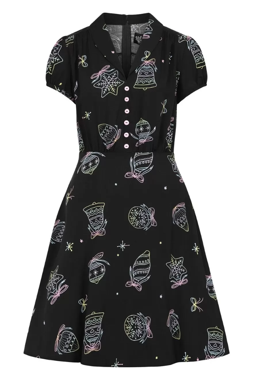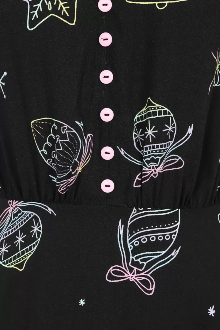 Always merry & bright in our Merry Mid Dress.Black mid dress printed with pastel festive illustrations Framed by a flatt…