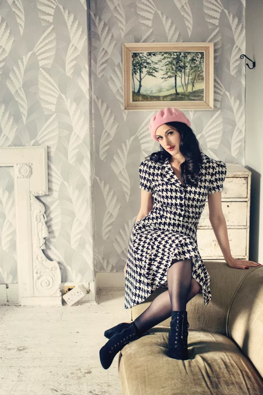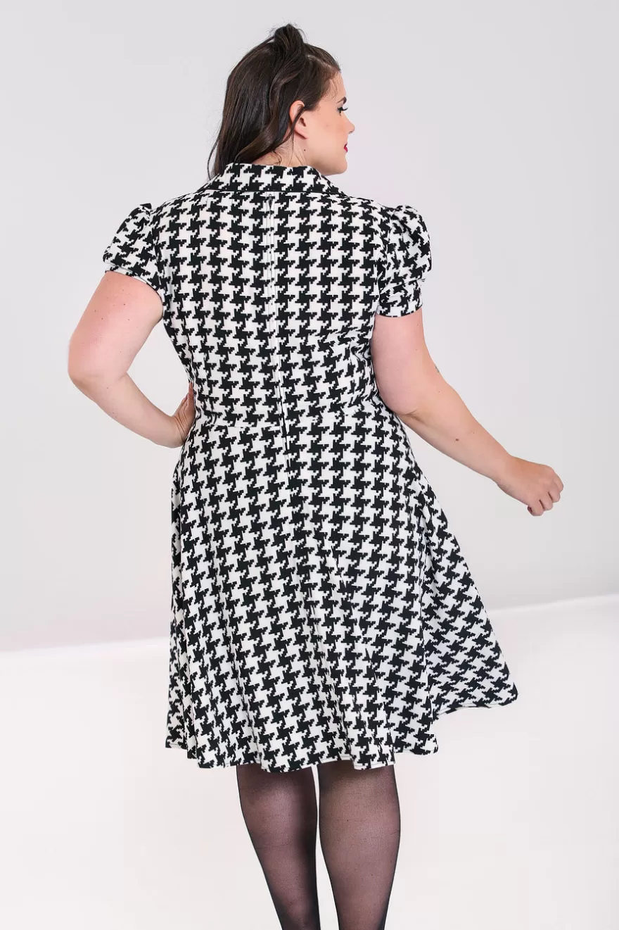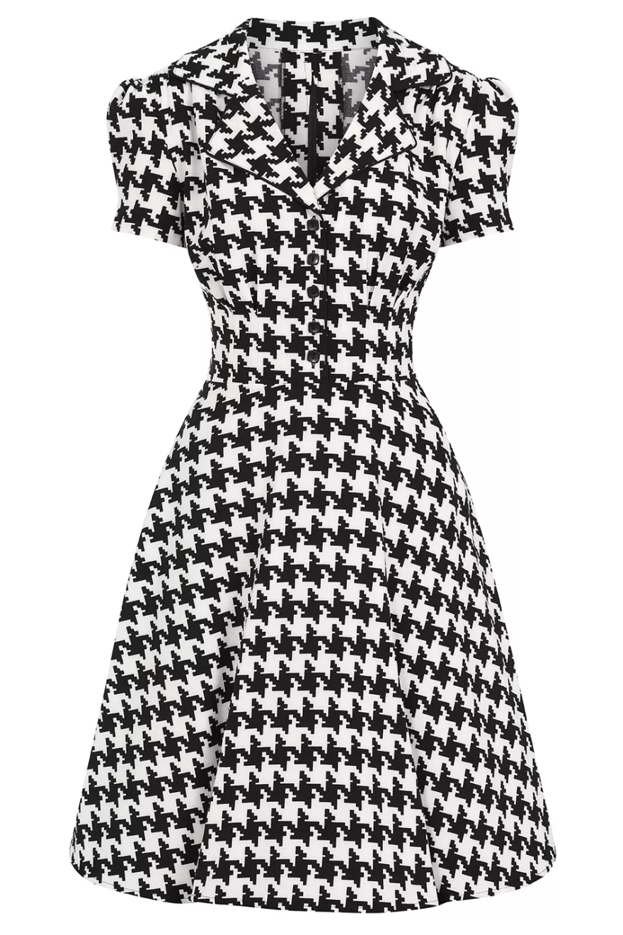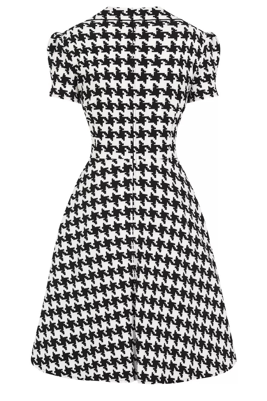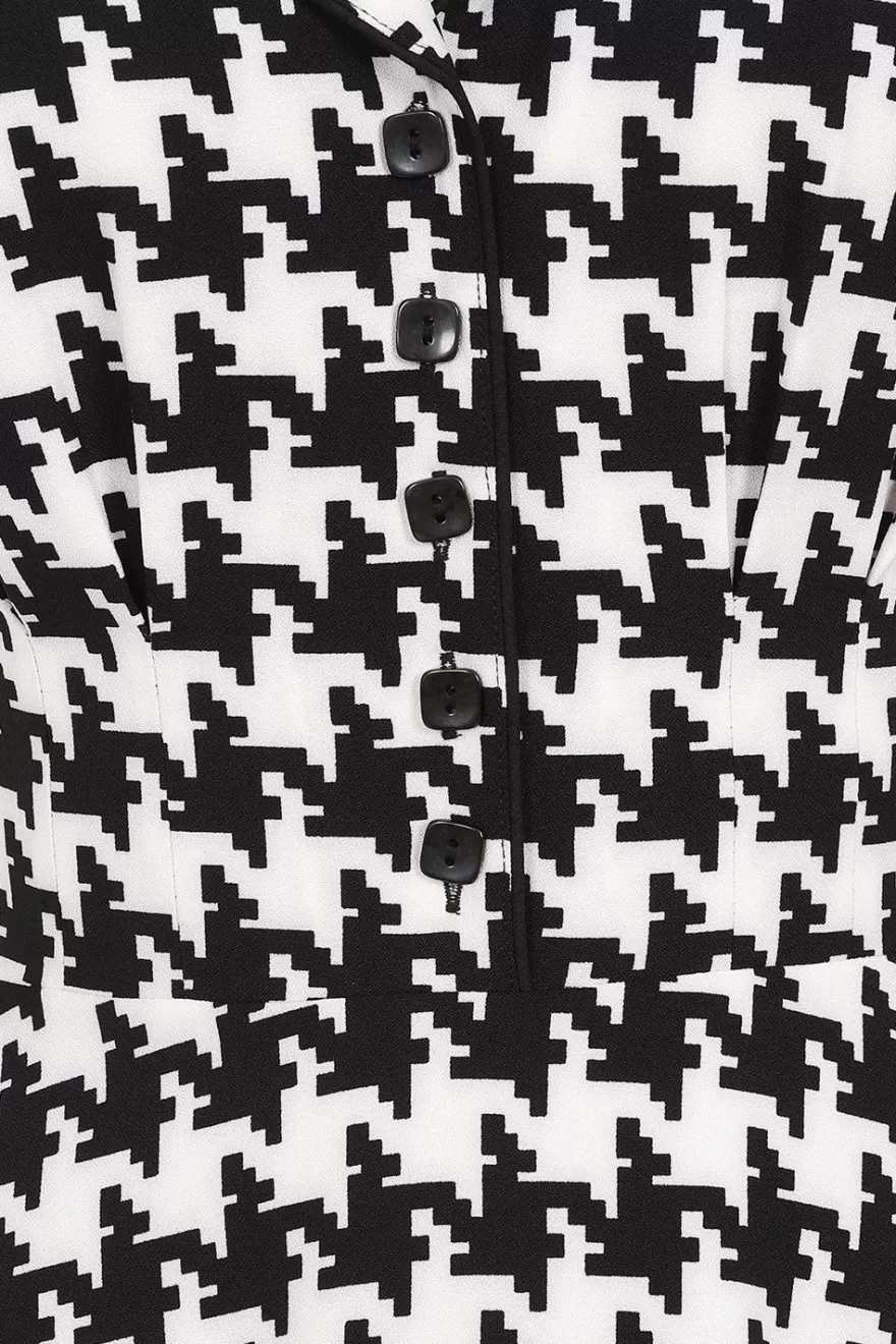 Make a statement this season in our monochrome Blake Mid Dress.Black and off-white houndstooth printed mid dressFramed b…