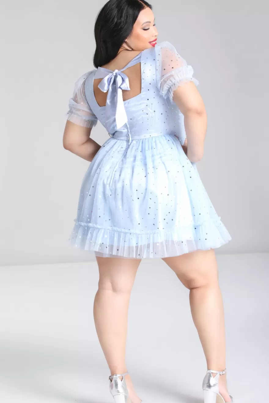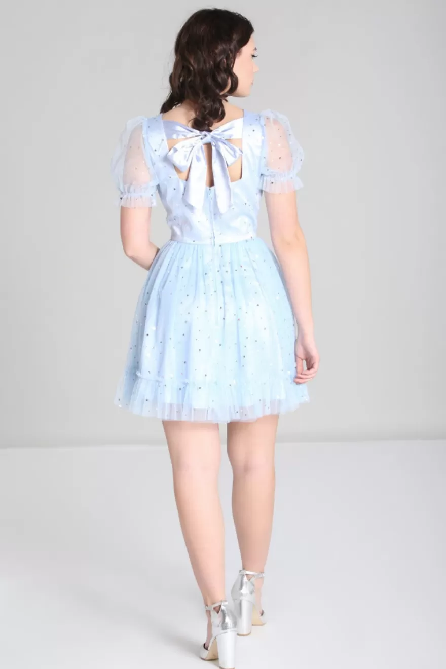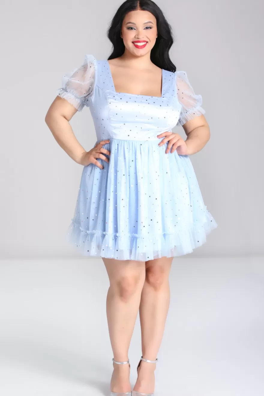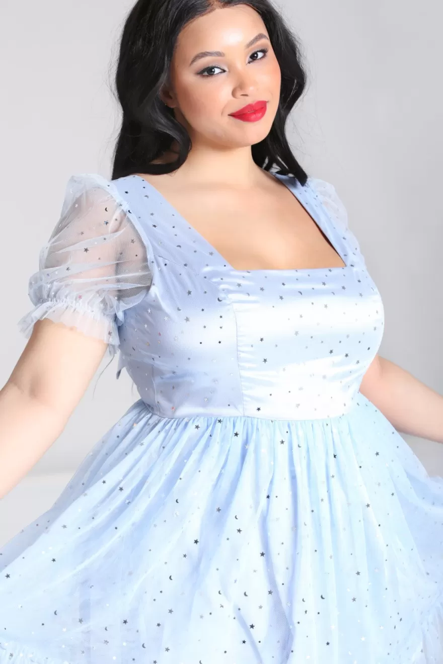 Tulle mini dress available in Black and Pastel BlueSparkley stars & moons on the tulle outer layerDress is lined in matc…