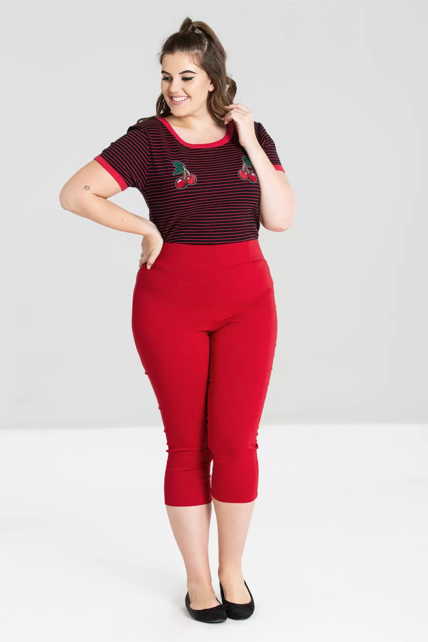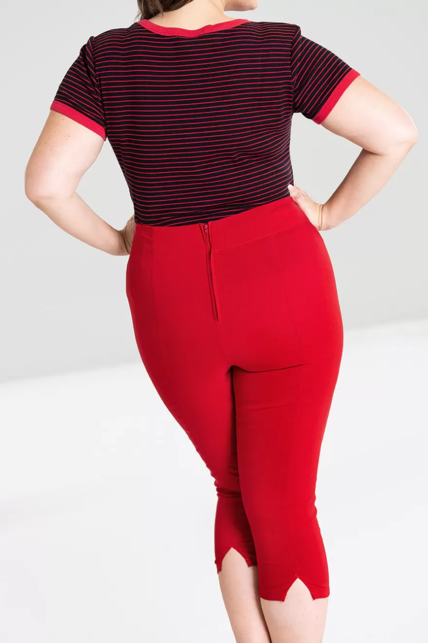 Fitted capri pants/pedal pushers.Stretchy bengaline fabric Self fabric waistband.Darts in the front to shape.Centre sea…