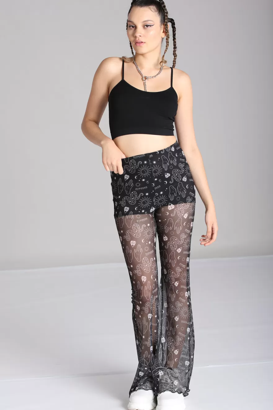 Printed stretch mesh trousersOuija elements in white on black backgroundLettuce finish on hem of trousersHigh waisted me…