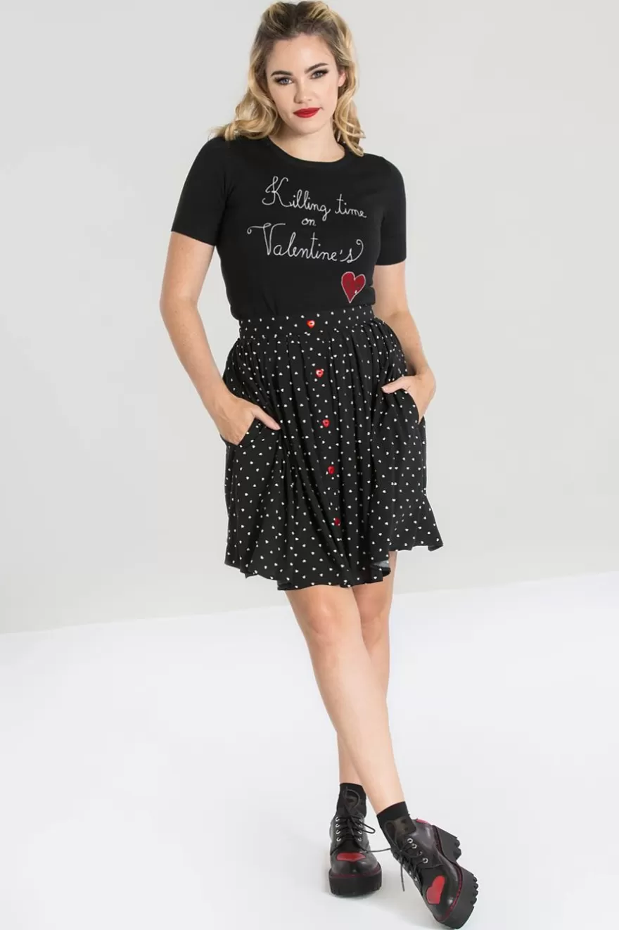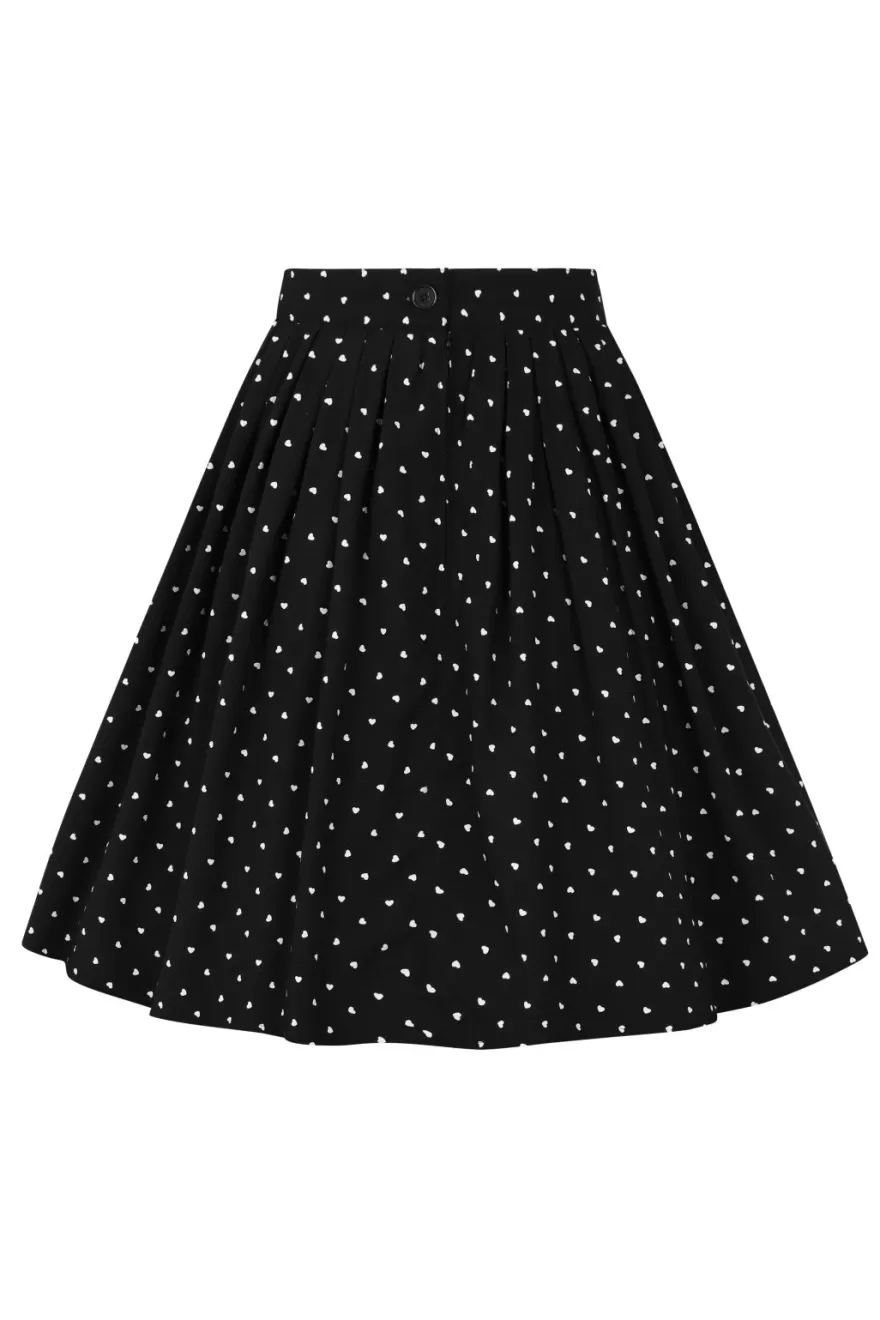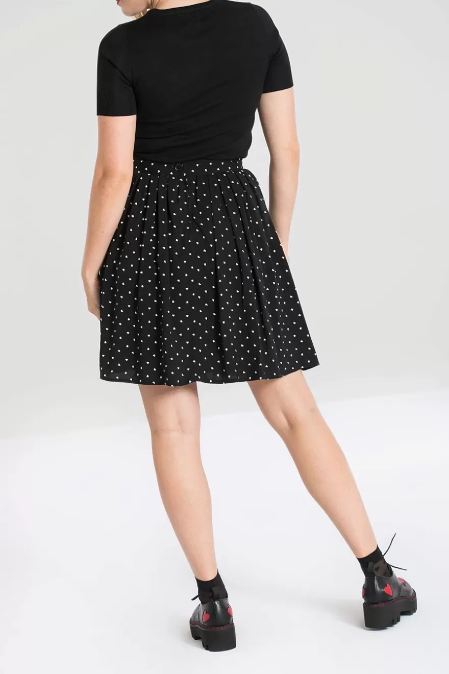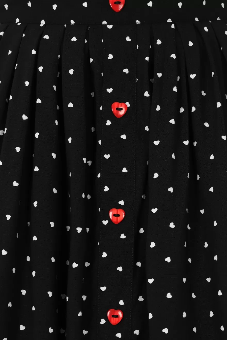 Printed mini skirtPolka dot heart print on a black backgroundDecorative placket with red heart shaped buttons down the c…