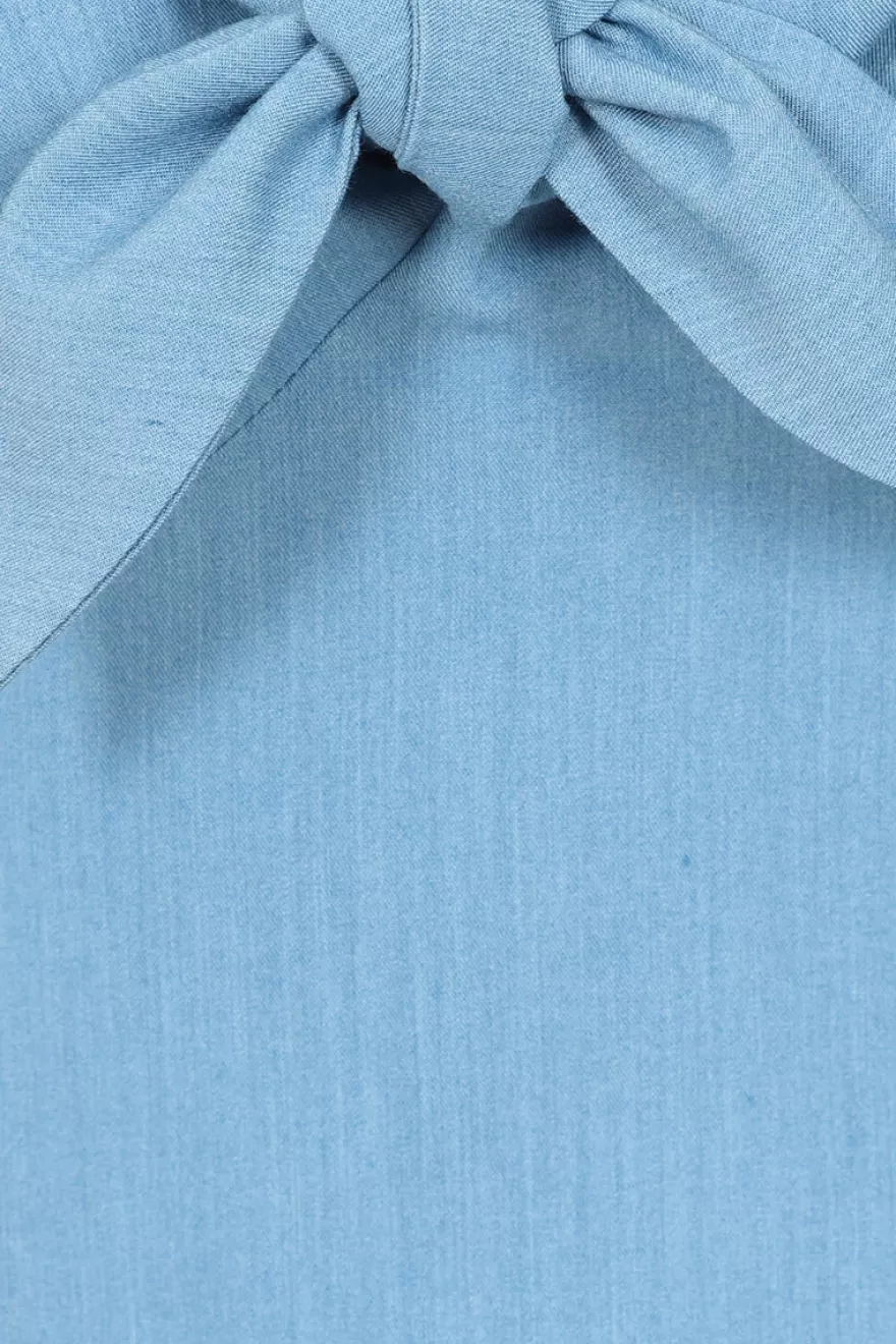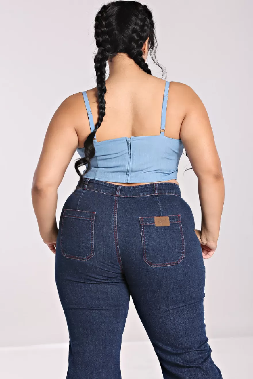 Light blue crop topAdjustable spaghetti straps in self fabricSweetheart neckline, tie up bust detailLength to waistlineZ…