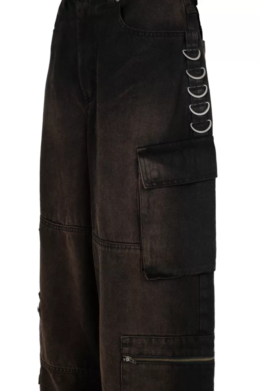 Wide leg jeans in brown grunge washWaistband with belt loopsFront button & zip fastening2 seams across the legsLarge poc…