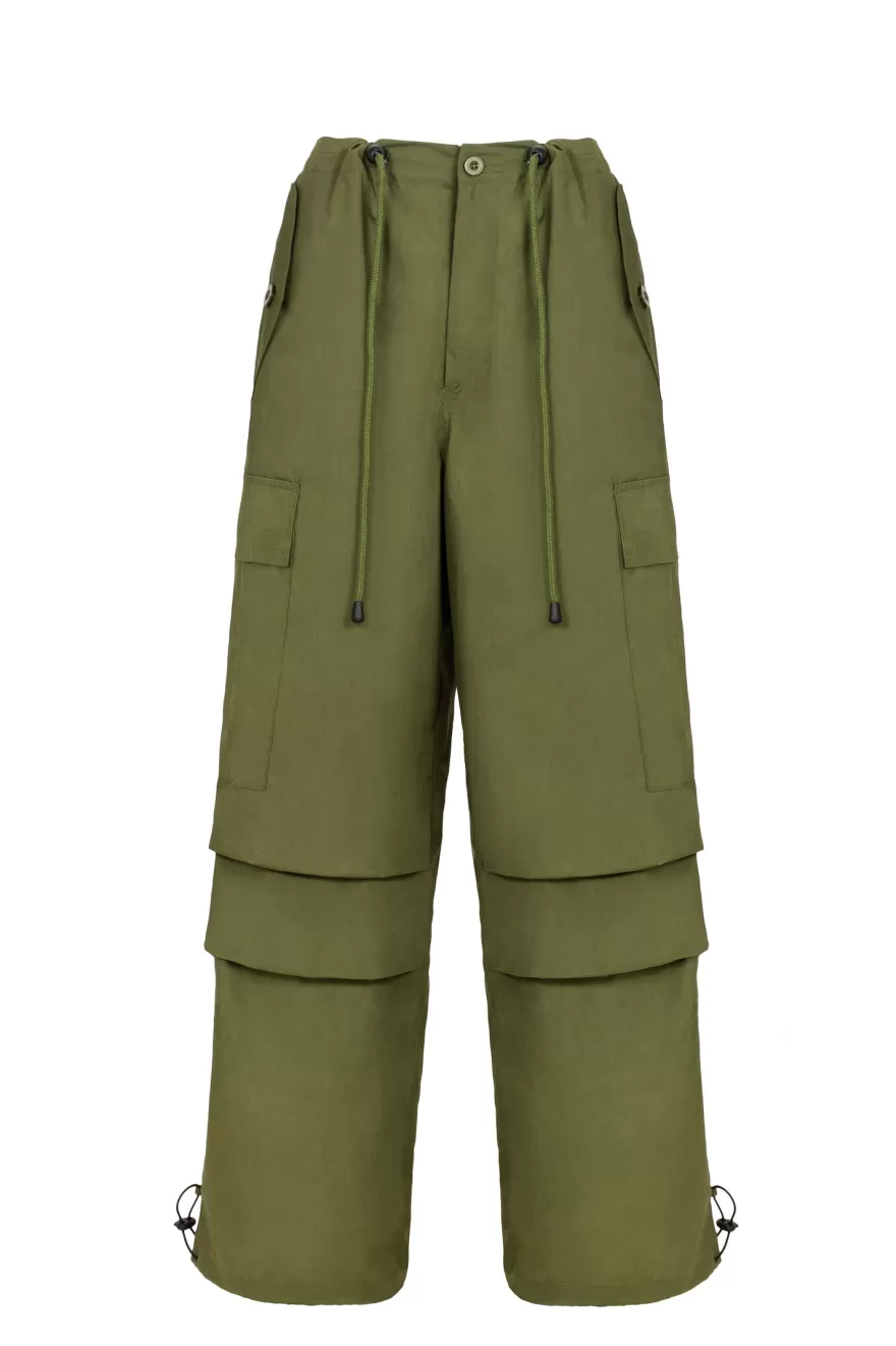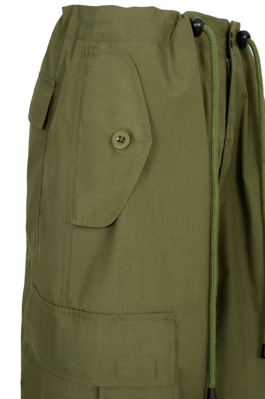 - Large cargo style pockets on both legs with black hanging ribbon detailing