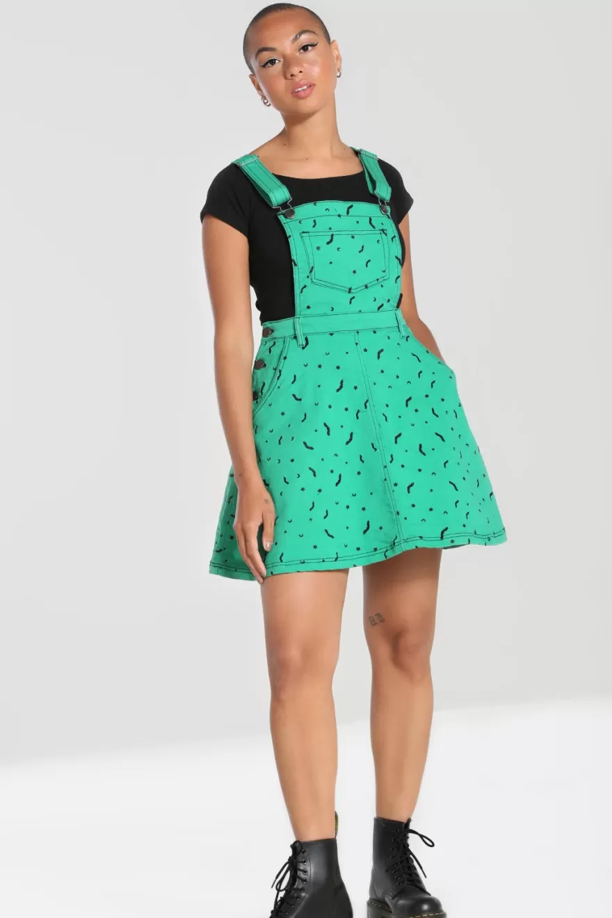 Black pinafore dressBats & moons embroidery all over in contrasting colour Pocket on front panelCross over adjustable st…