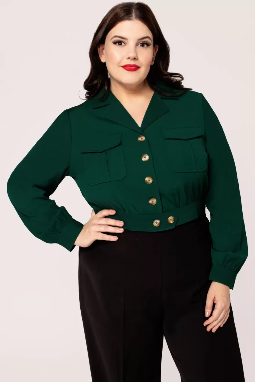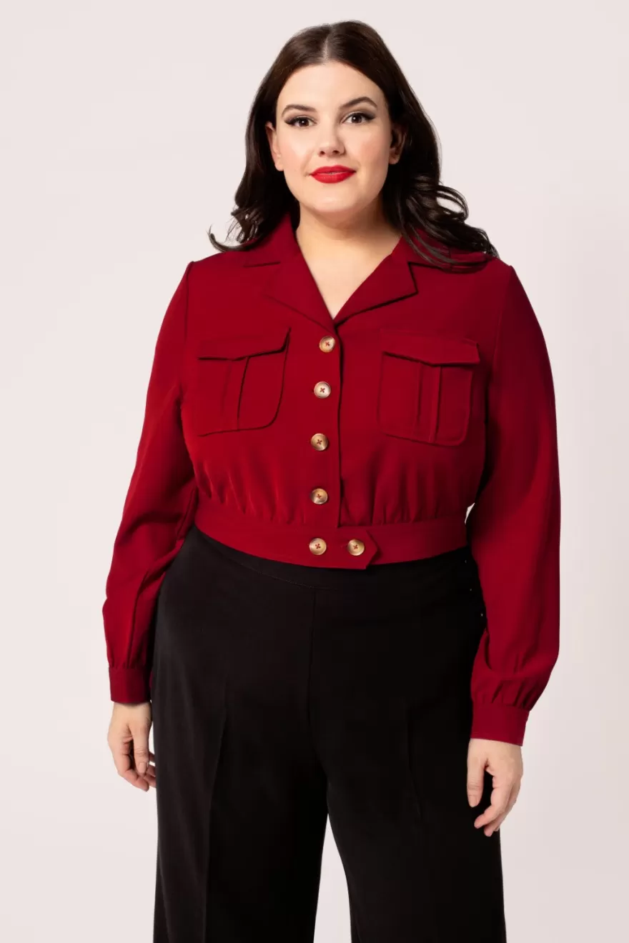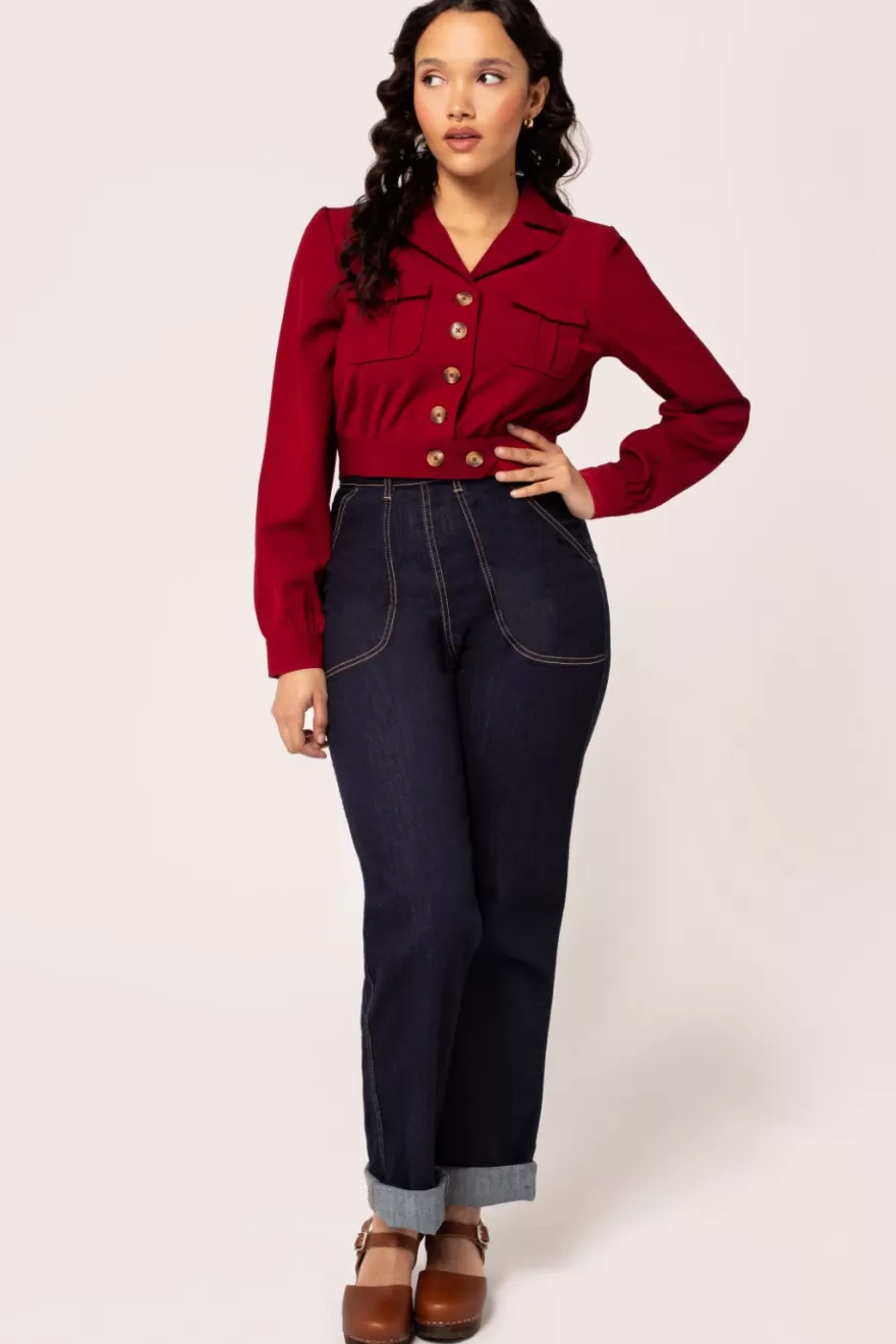 - Vintage style cropped jacket available in khaki, dark green, dark red